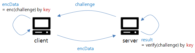 클라이언트 인증의 경우, 서버가 challenge를 생성해서 클라이언트로 보내고, 클라이언트는 이 값을 자신이 가지고 있는 키(key)로 암호화(encrypt)를 해서 응답(response) 메시지에 첨부해서 서버에게 보낸다. 서버는 응답메시지를 복호화(decrypt)를 해서 자신이 보냈던 challenge인지 비교를 하고, 동일한 값이라면 인증성공으로, 다른 값이라면 인증실패로 처리한다. 서버 인증의 경우, 클라이언트 인증과 반대로 처리되며, 클라이언트-서버 상호인증의 경우 양쪽에서 동일한 처리를 하게 된다.
