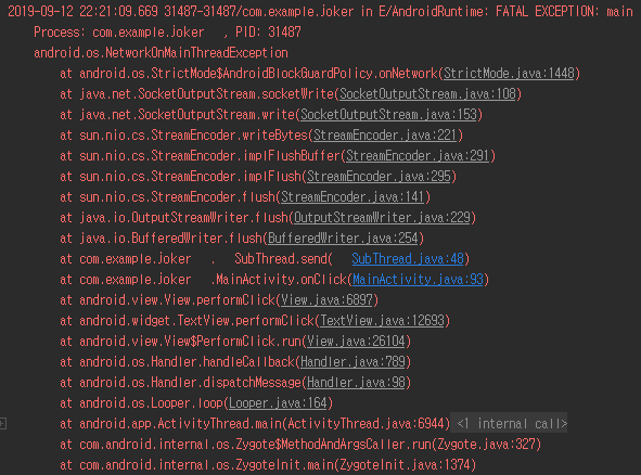 2019-09-12 22:21:09.669 31487-31487/com.example.joker E/AndroidRuntime: FATAL EXCEPTION: main |