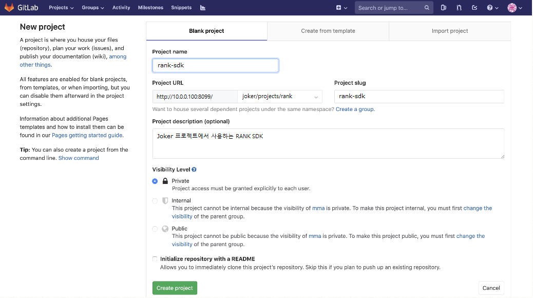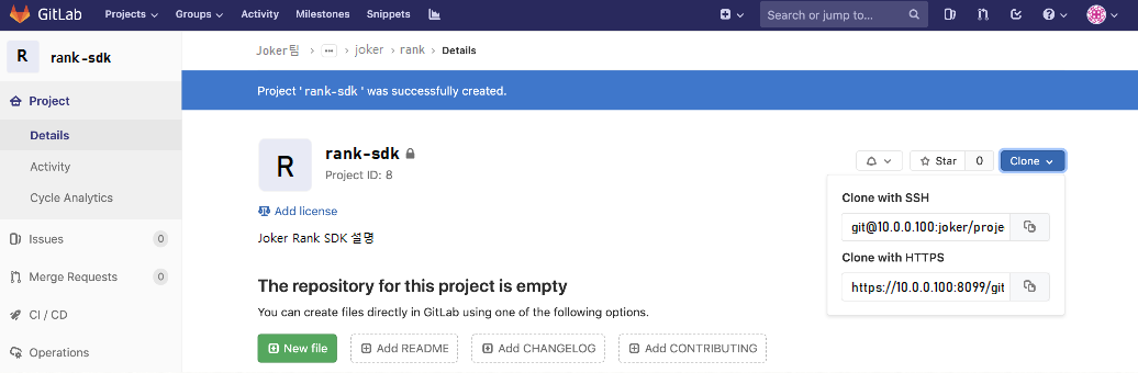 - (이동시킬) 새로운 GitLab 경로 : http://10.0.0.100:8099/joker/rank/rank-sdk